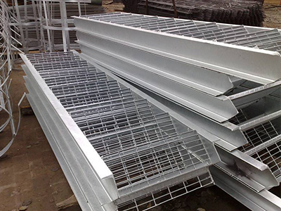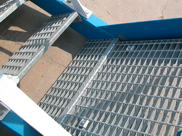 樓梯踏步板是由鋼格柵板加工而成的(鋼格柵板是用扁鋼按照一定的間距和橫桿進行交叉排列,并且焊接成中間帶有方形格子的一種鋼鐵制品)。該產品表面一般用熱鍍鋅、電鍍鋅處理。